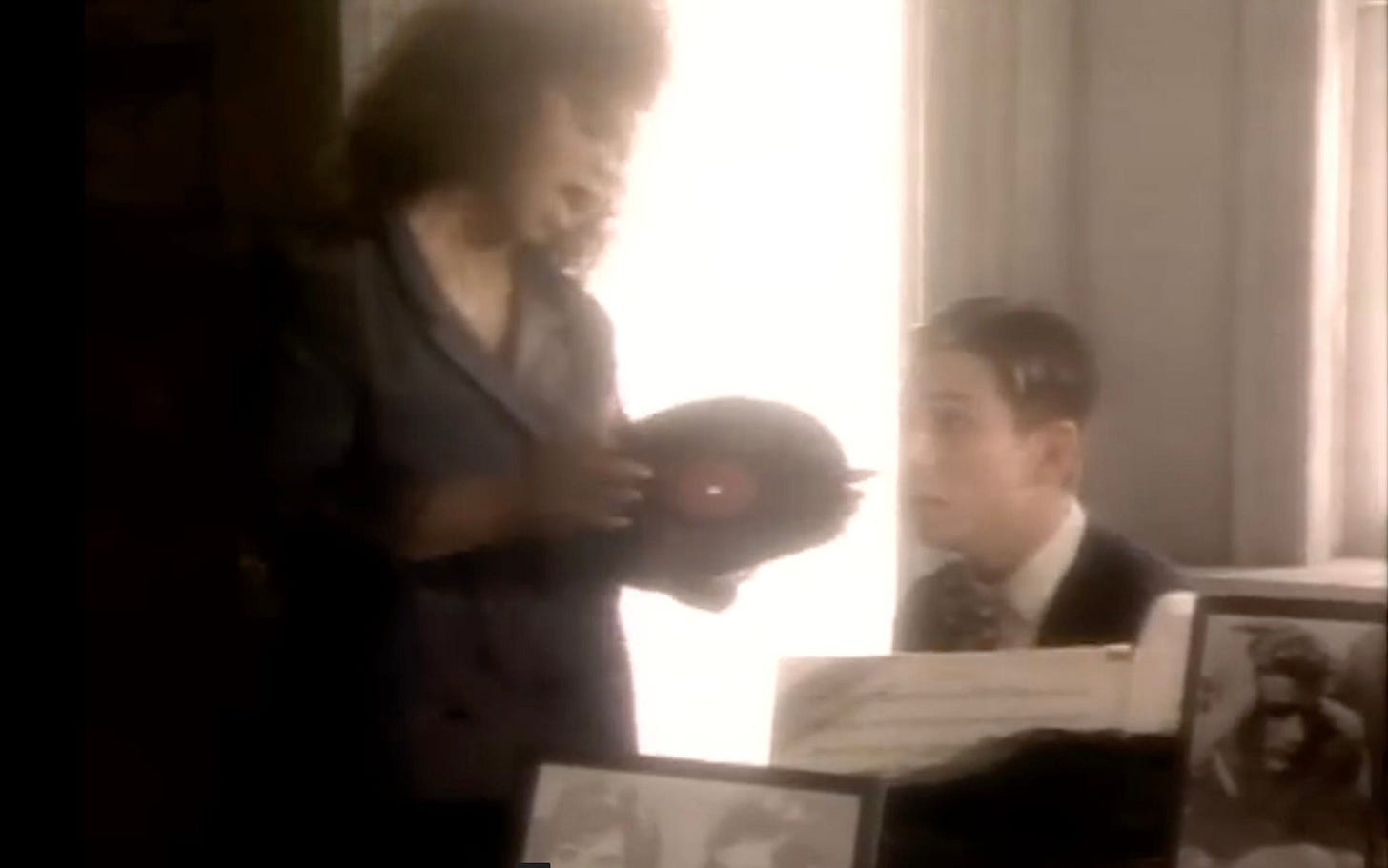 But she’s not done yet! After putting the record on the hi-fi, Deniece returns and The Boy has changed clothes. Mommy I mean… Deniece sits down next to him. Apparently, he’s cool now!