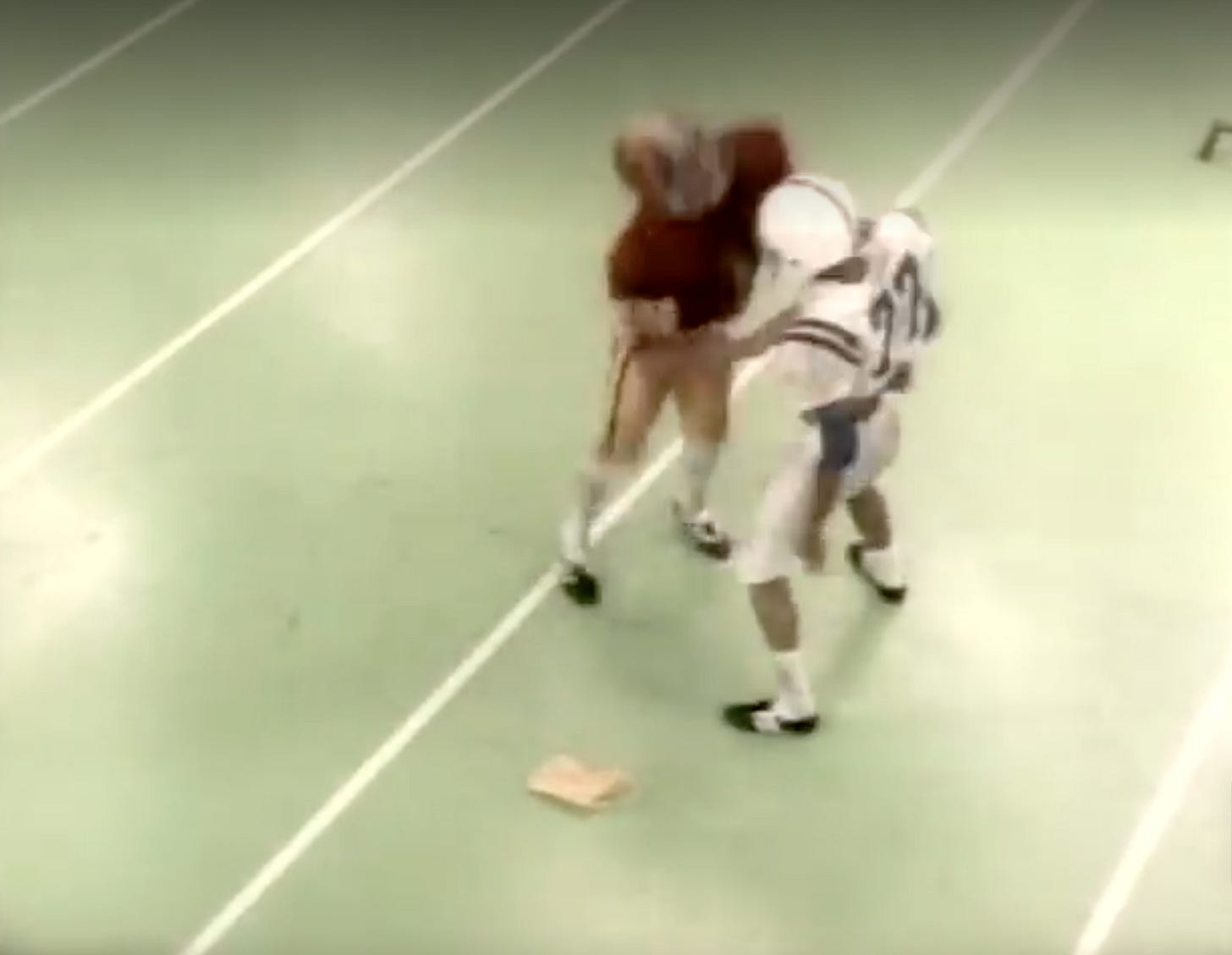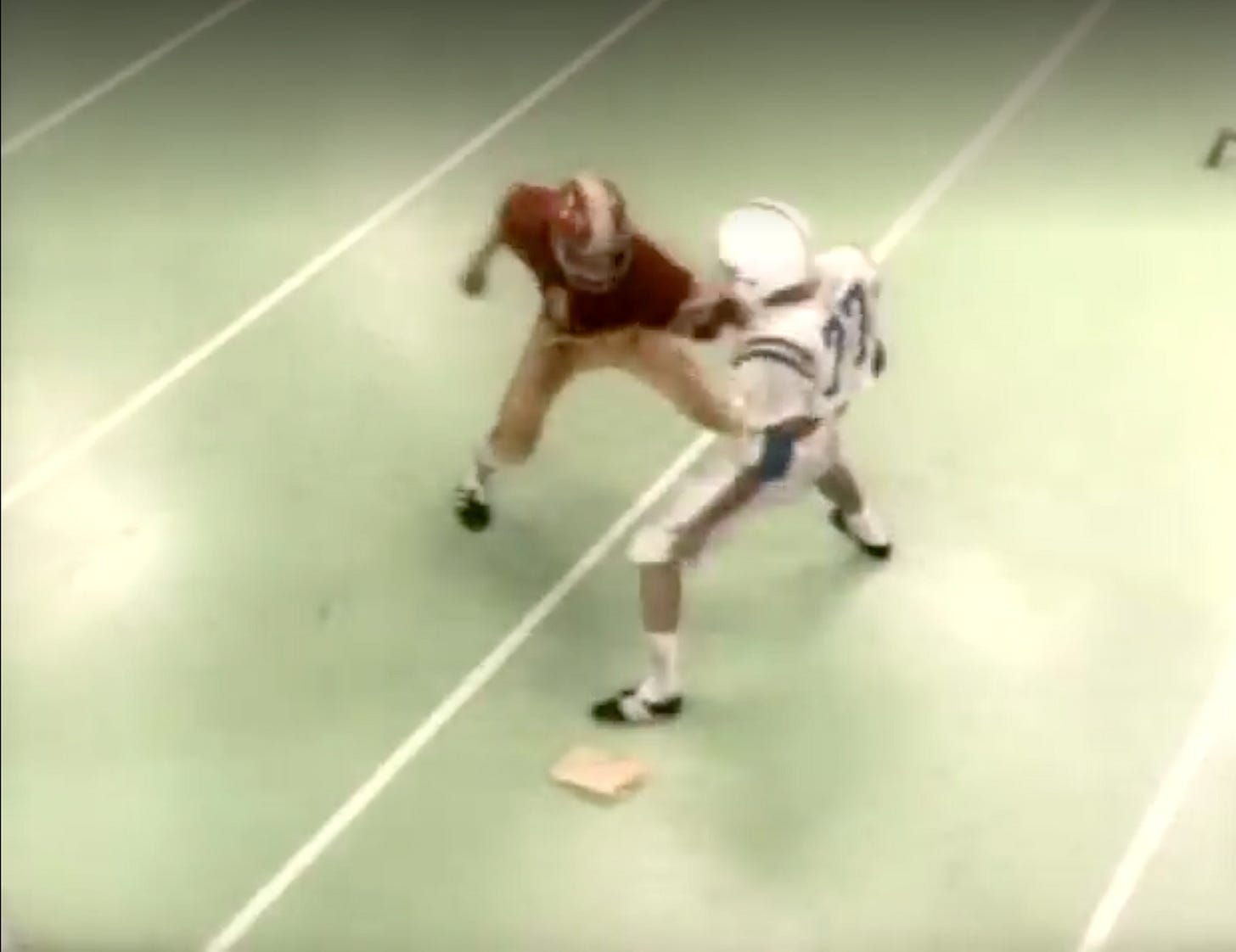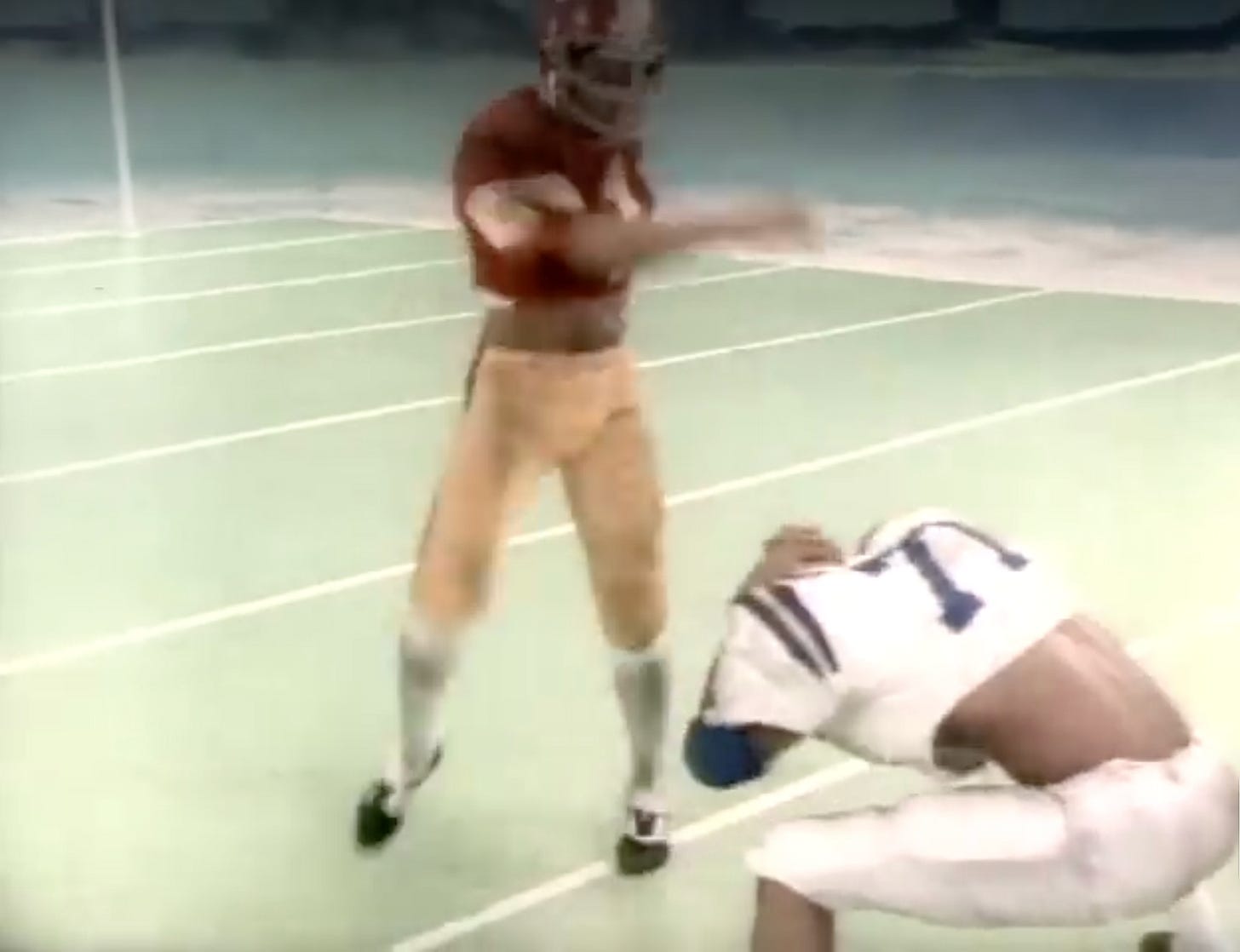 Maybe The Boy forgot the snap count, but that someone seems to knock him down before he’s ready.