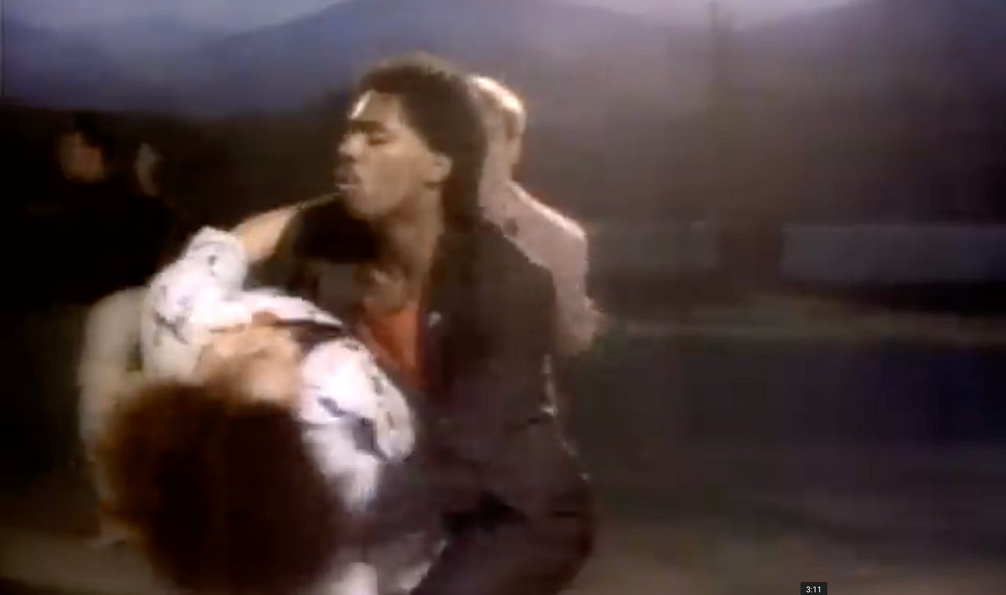 After all that, the kid lays a kiss on Ms. Williams. And you watch that kiss happen in 1984 and wonder what that white kid’s parents must have thought about it. To be fair, it was very sweet.