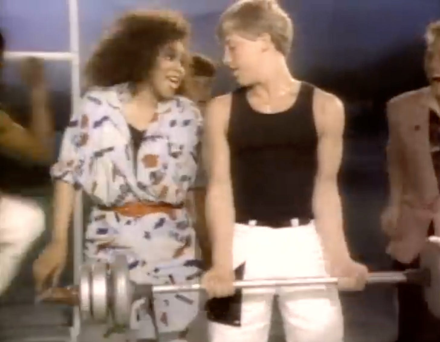 Lifting weights with a guy who wants to sleep with the star.
